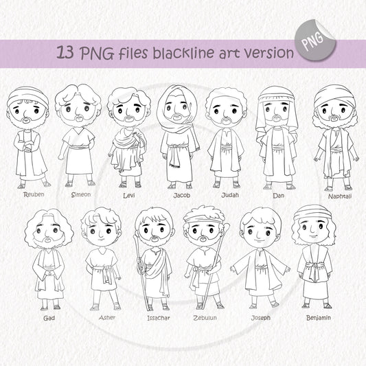 12 Sons of Jacob ClipArt ,Blackline art, digital stamp clipart PNG files 300 dpi.