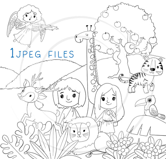 Adam and Eve Clip Art, Religion, Bible stories, digital stamp clipart, blackline art ,PNG files
