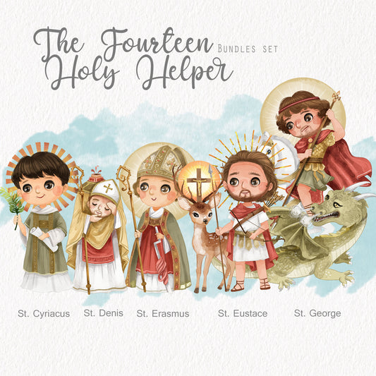 The Fourteen Holy Helpers Bundles set ,Religion clipart, Bible stories Clipart, Hand draw illustration PNG files