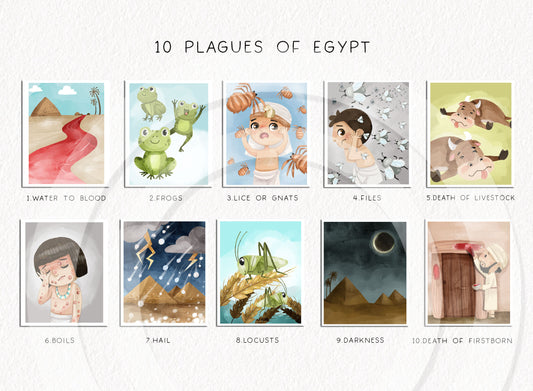 TEN PLAGUES of Egypt Clipart , Bible Stories, hand drawn illustration, Instant Download PNG files 300 dpi.