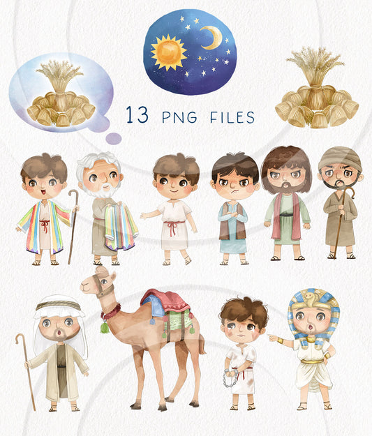 Joseph Coat of Many Colors Clipart , Bible Stories, hand drawn illustration, Instant Download PNG files 300 dpi.