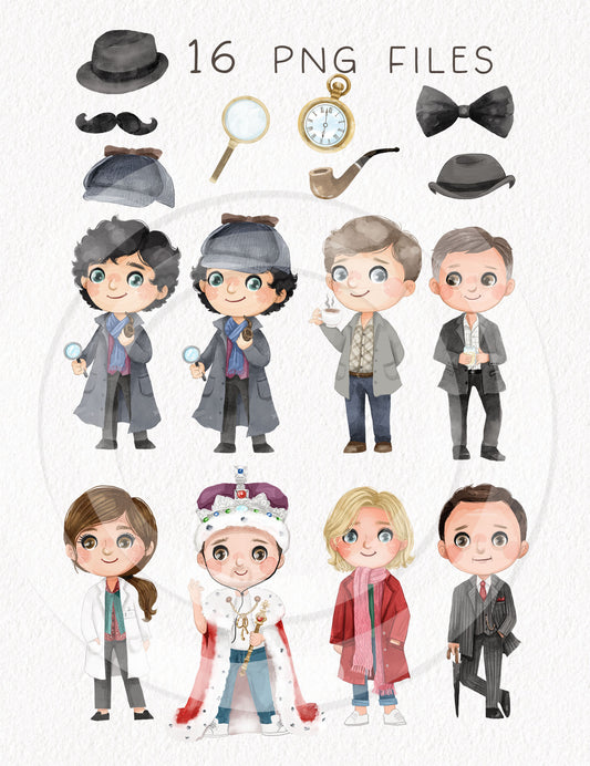 Detective characters clipart , Hand drawn clipart instant download PNG file - 300 dpi