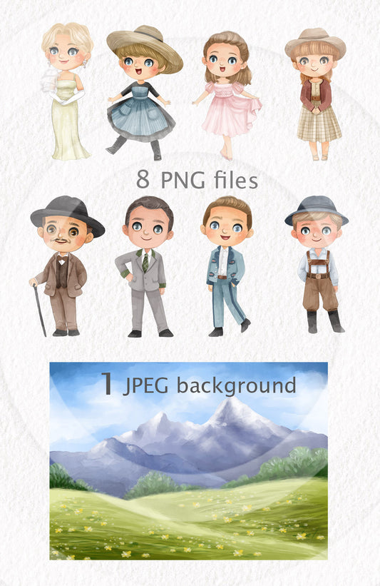 Sound of Music characters inspiration clipart instant download PNG file- 300 dpi