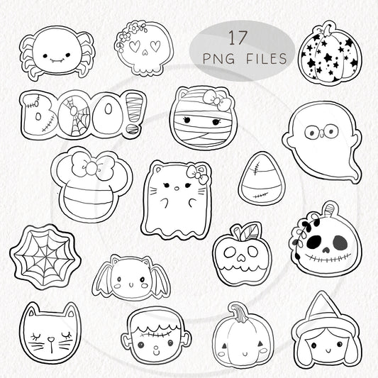 Halloween Cookies doodle ,blackline clipart, PNG file - 300 dpi