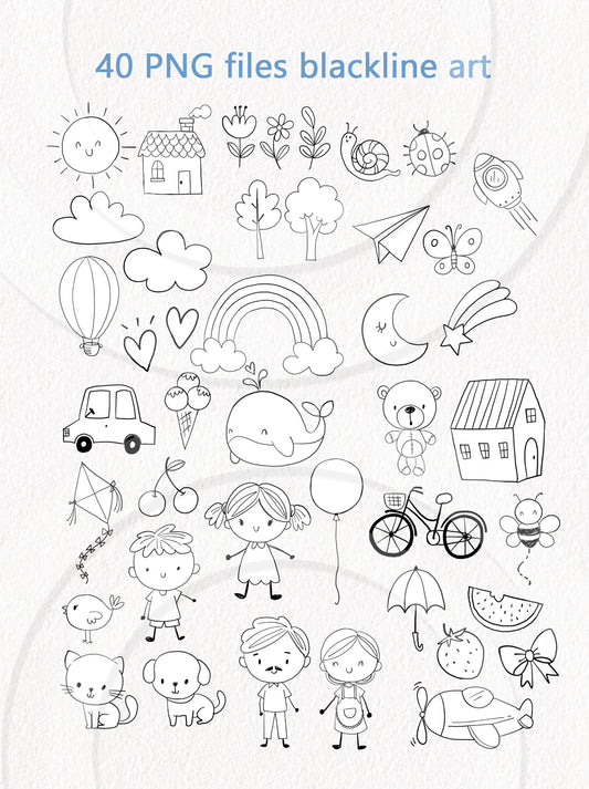 Doodle kids hand drawn ,blackline art , digital stamp ,instant download PNG file - 300 dpi