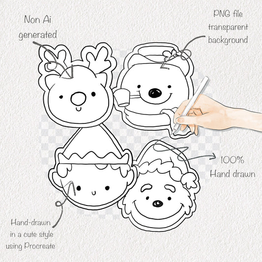 Christmas Cookies blackline Clipart , PNG file - 300 dpi