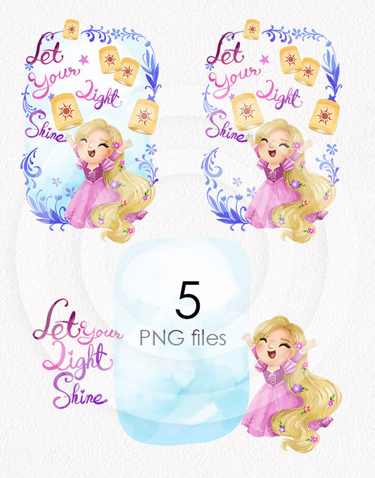Let your light shine, cute princess clipart instant download PNG file - 300 dpi