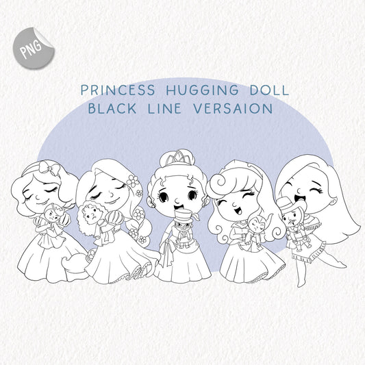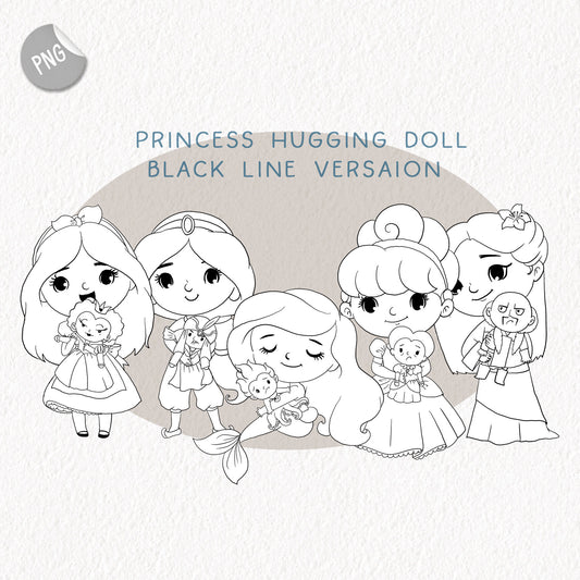 Princess hugging doll clipart set 1 , instant download PNG file - 300 dpi