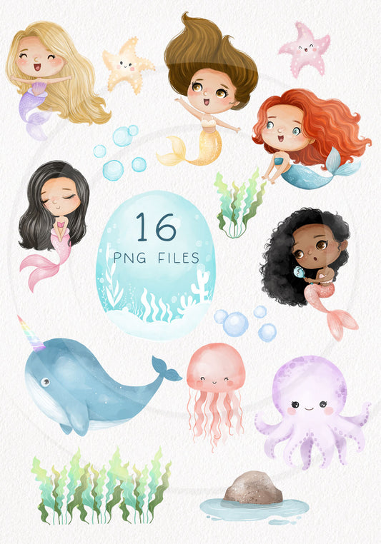 Cute Mermaids clipart instant download PNG file - 300 dpi