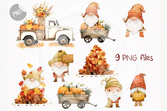 Fall Gnomes Clipart PNG files instant download PNG file - 300 dpi.