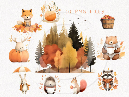 Autumn animals clipart,woodland animals, instant download PNG file - 300 dpi