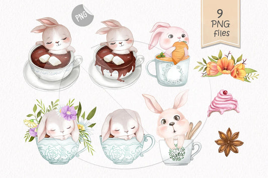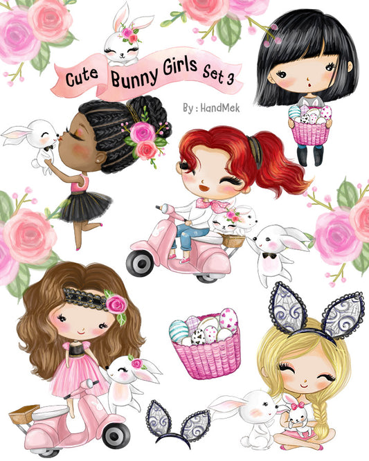 Cute bunny girls clipart instant download PNG file - 300 dpi