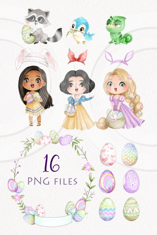 Cute Easter girls and pet clipart, Hand drawn clipart, instant download PNG file - 300 dpi