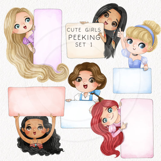 Cute girls peeking set 1, PNG files 300 dpi.