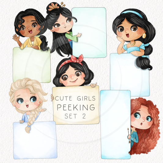 Cute girls peeking set 2, PNG files 300 dpi.
