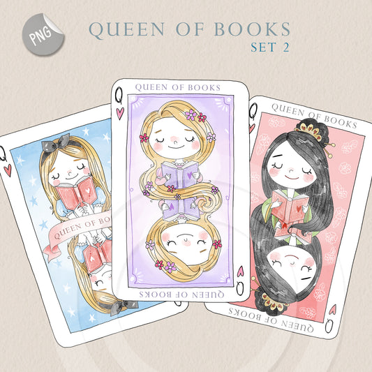Queen of books set 2 Hand Drawn clipart instant download PNG file - 300 dpi