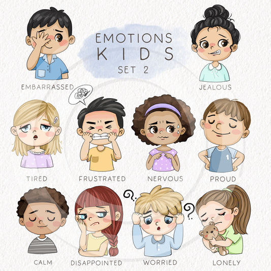 Emotions kids clipart set2, instant download PNG file - 300 dpi