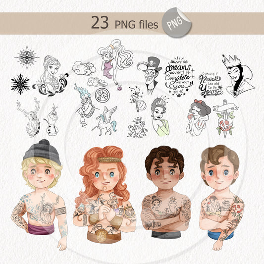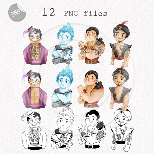 Tattoo villains men clipart set1 instant download PNG file - 300 dpi