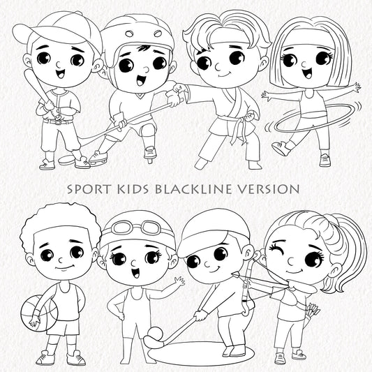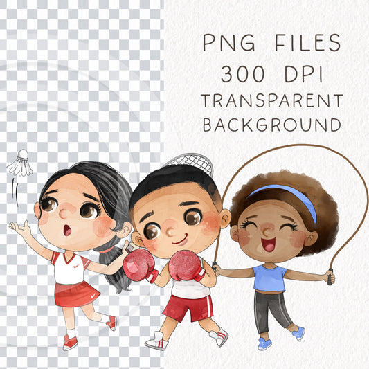 Sport Kids set 1, Kids Sport clipart, Hand drawn clipart, PNG files.