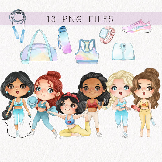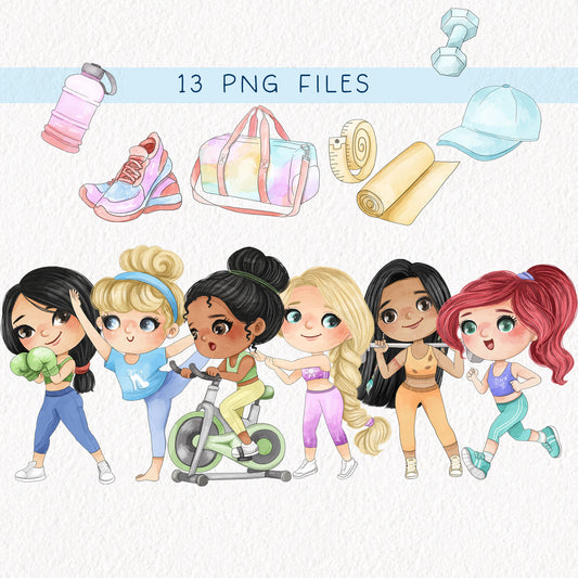 Cute girls workout set 1, PNG files 300 dpi.