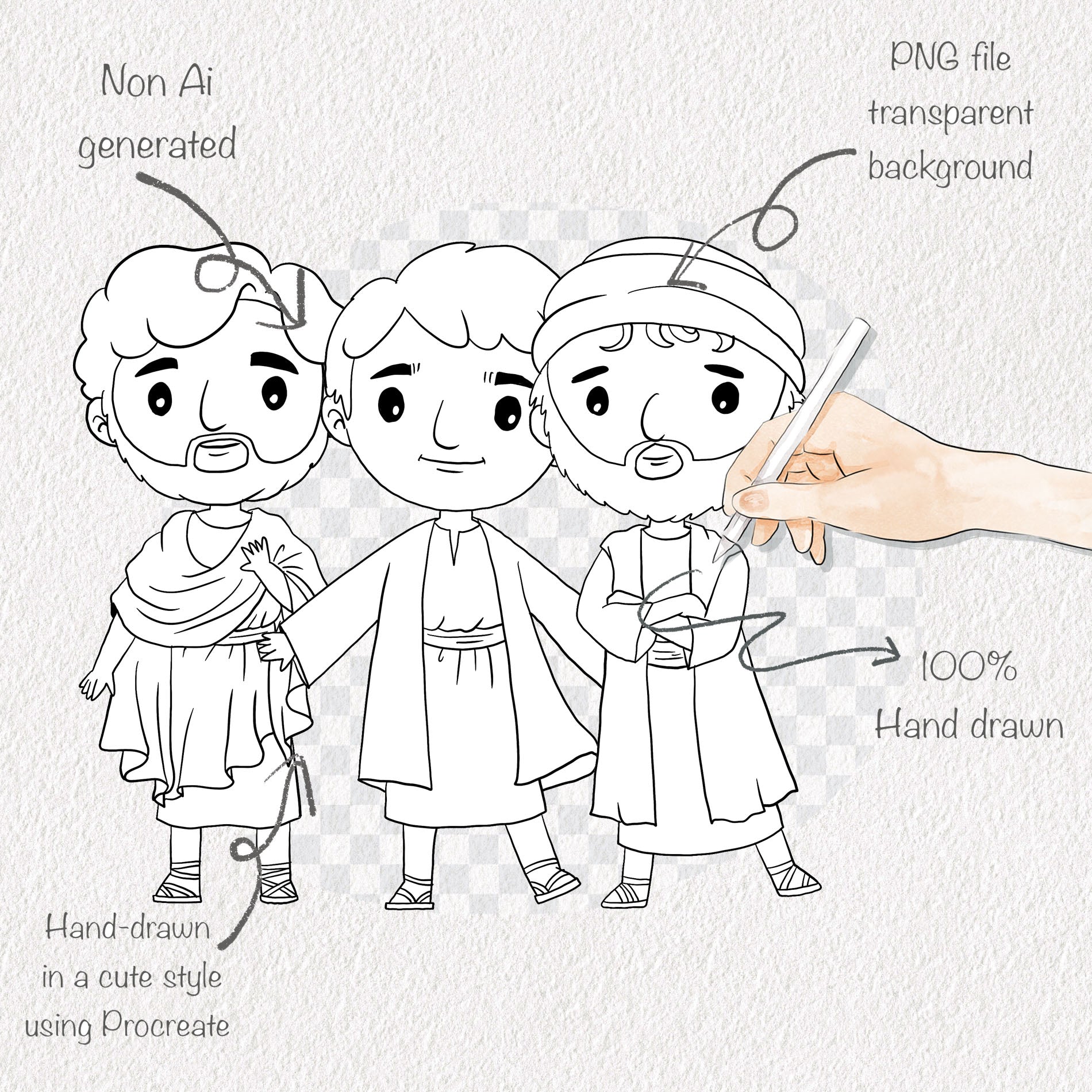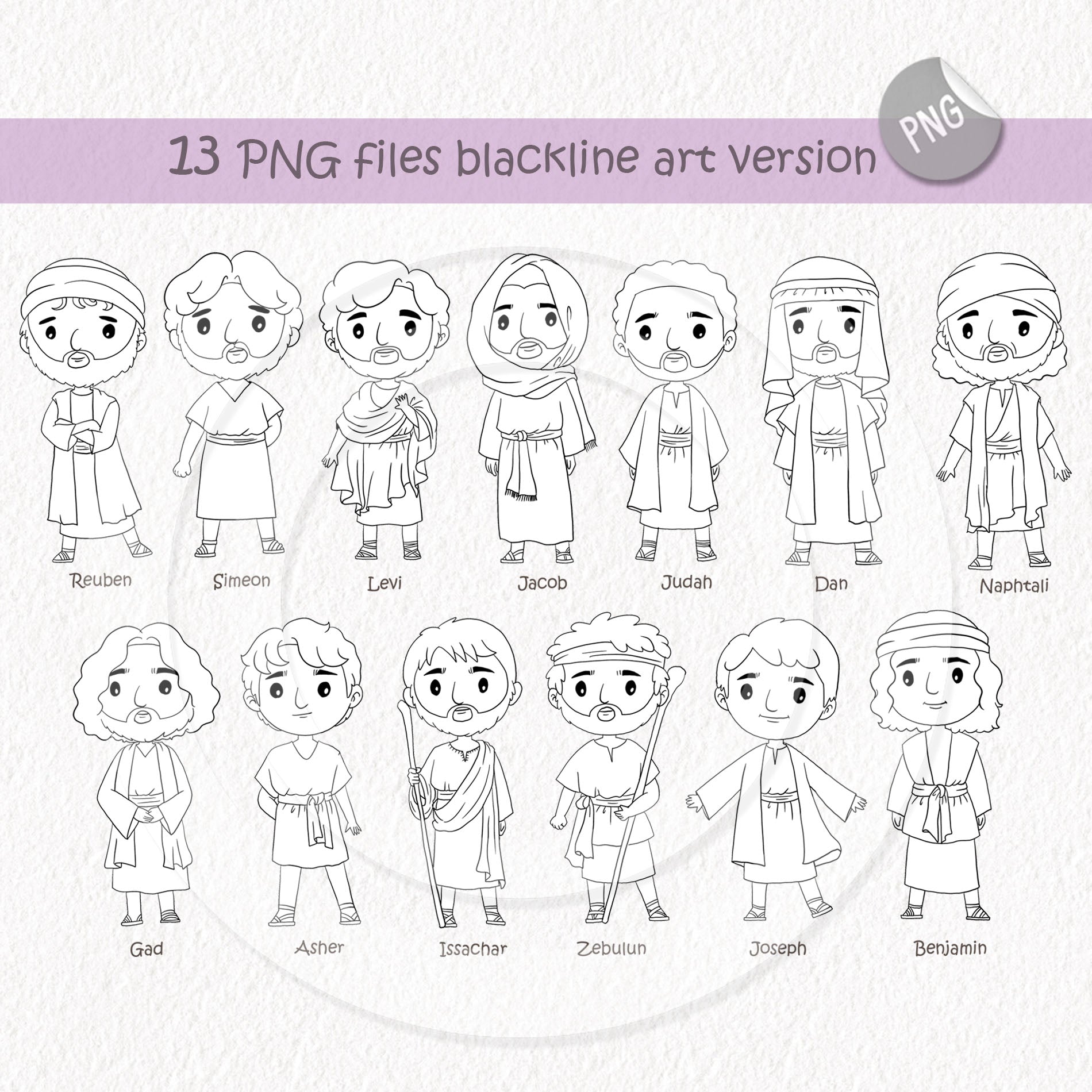 12 Sons of Jacob ClipArt ,Blackline art, digital stamp clipart PNG files 300 dpi.