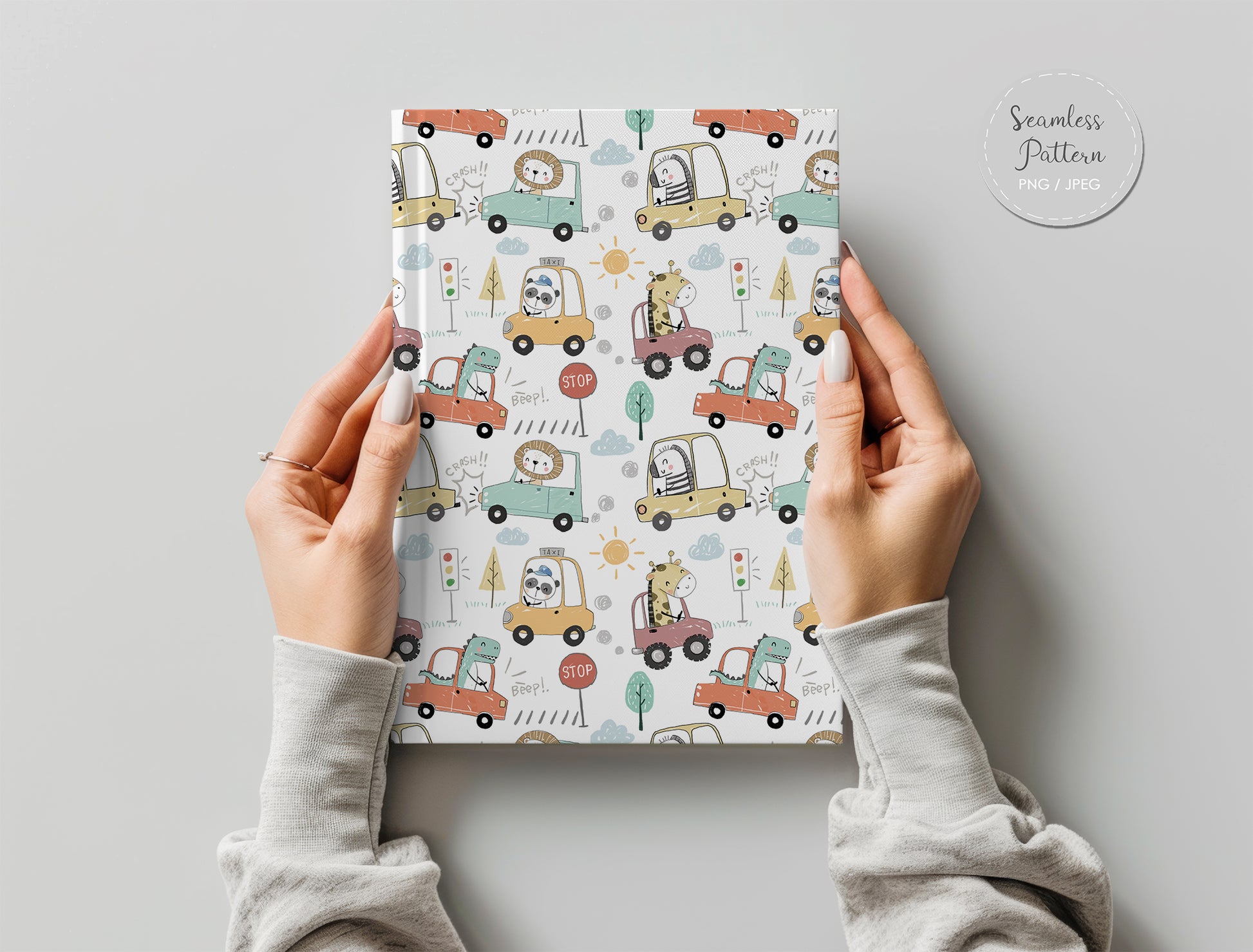 Animals car Seamless Pattern, instant download PNG file - 300 dpi