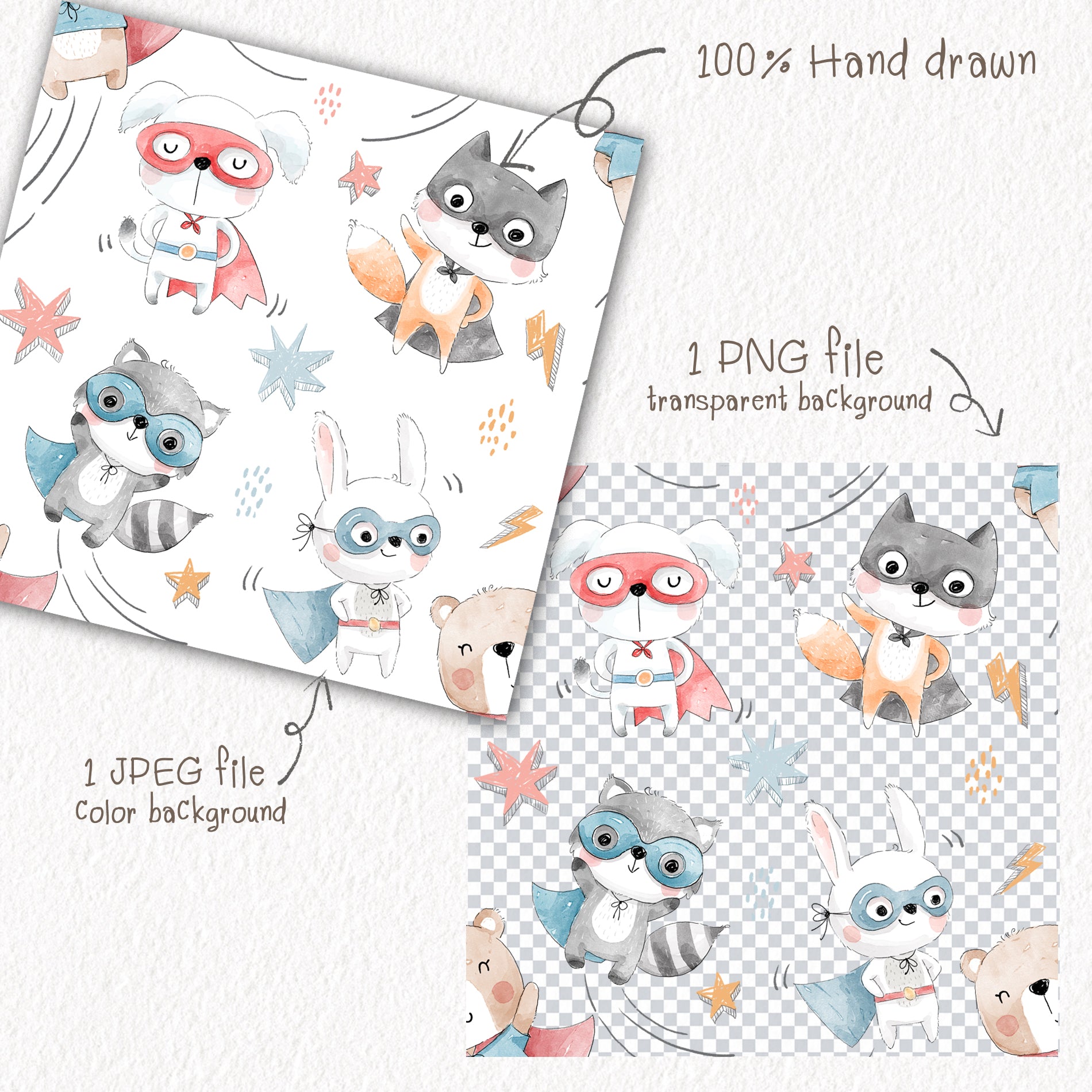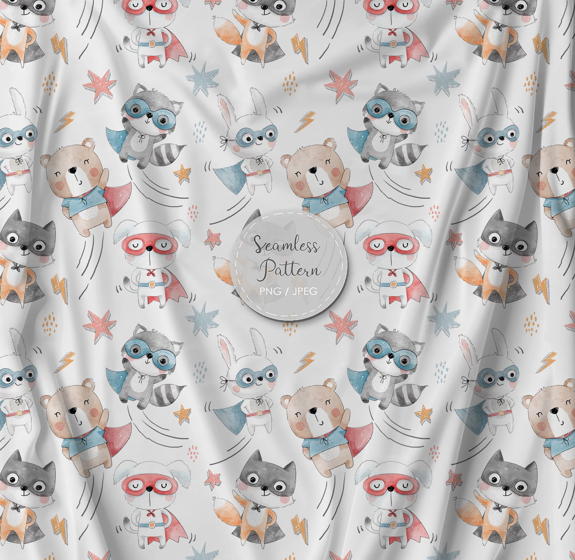 Animals superhero 2 Seamless Pattern, instant download PNG file - 300 dpi