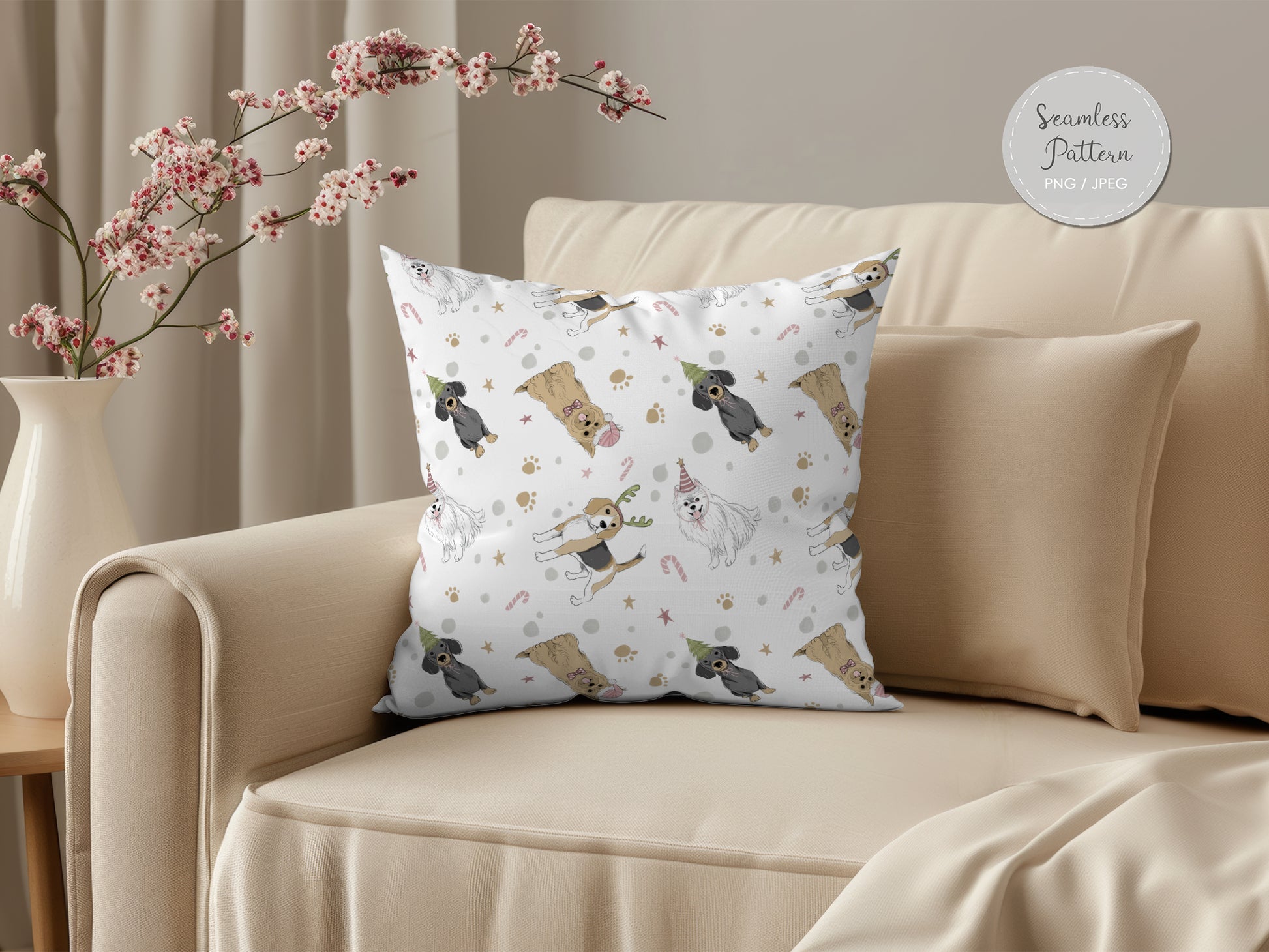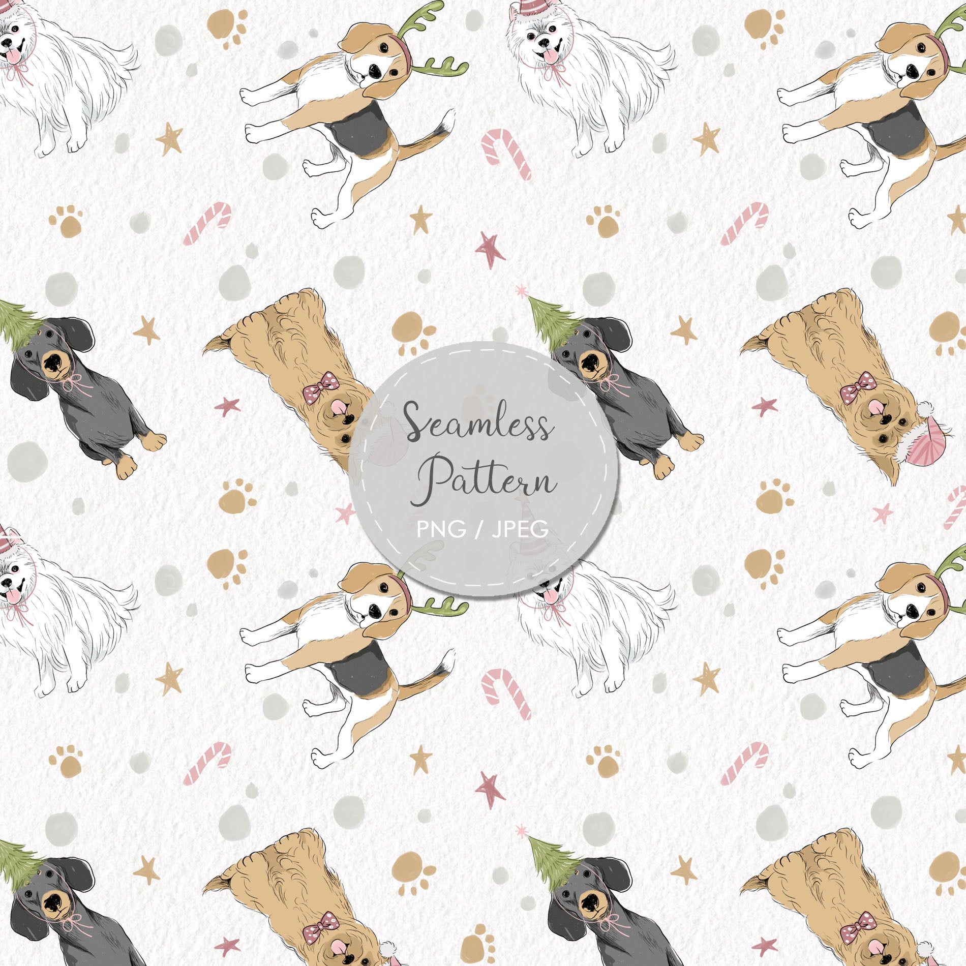 Christmas dog seamless Pattern, instant download PNG file - 300 dpi