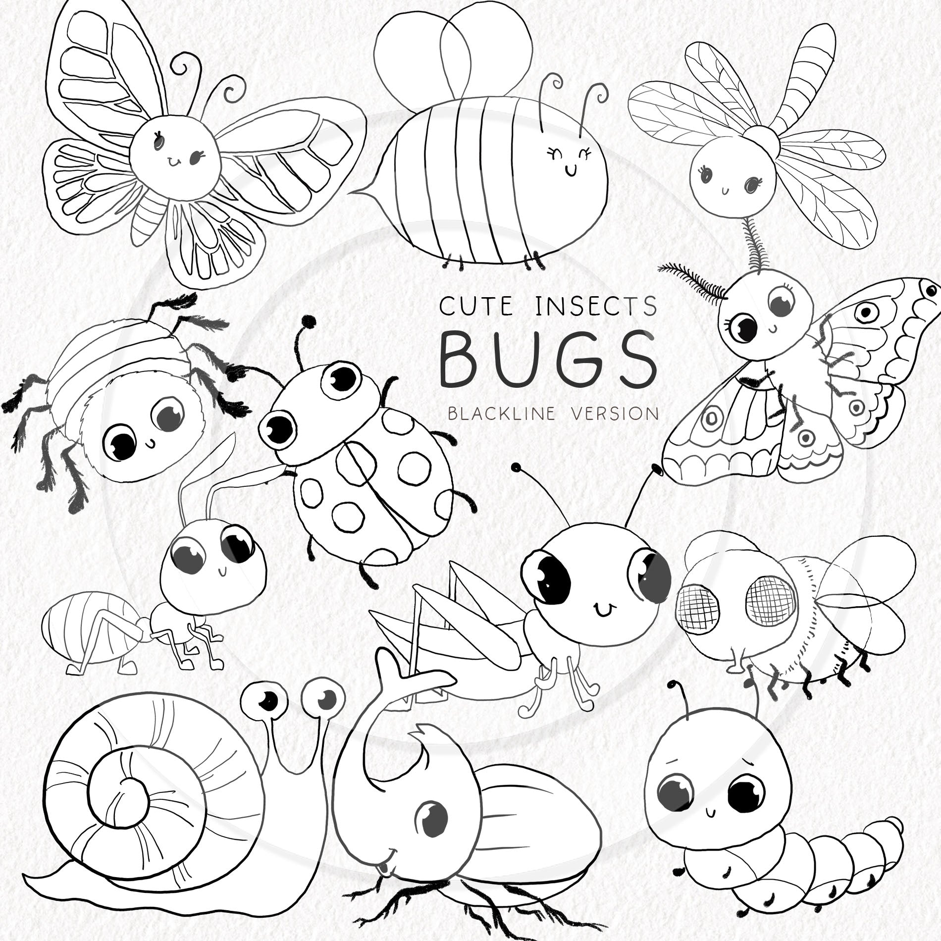 Cute Bugs, Insects Clipart, Hand drawn clipart, PNG files.
