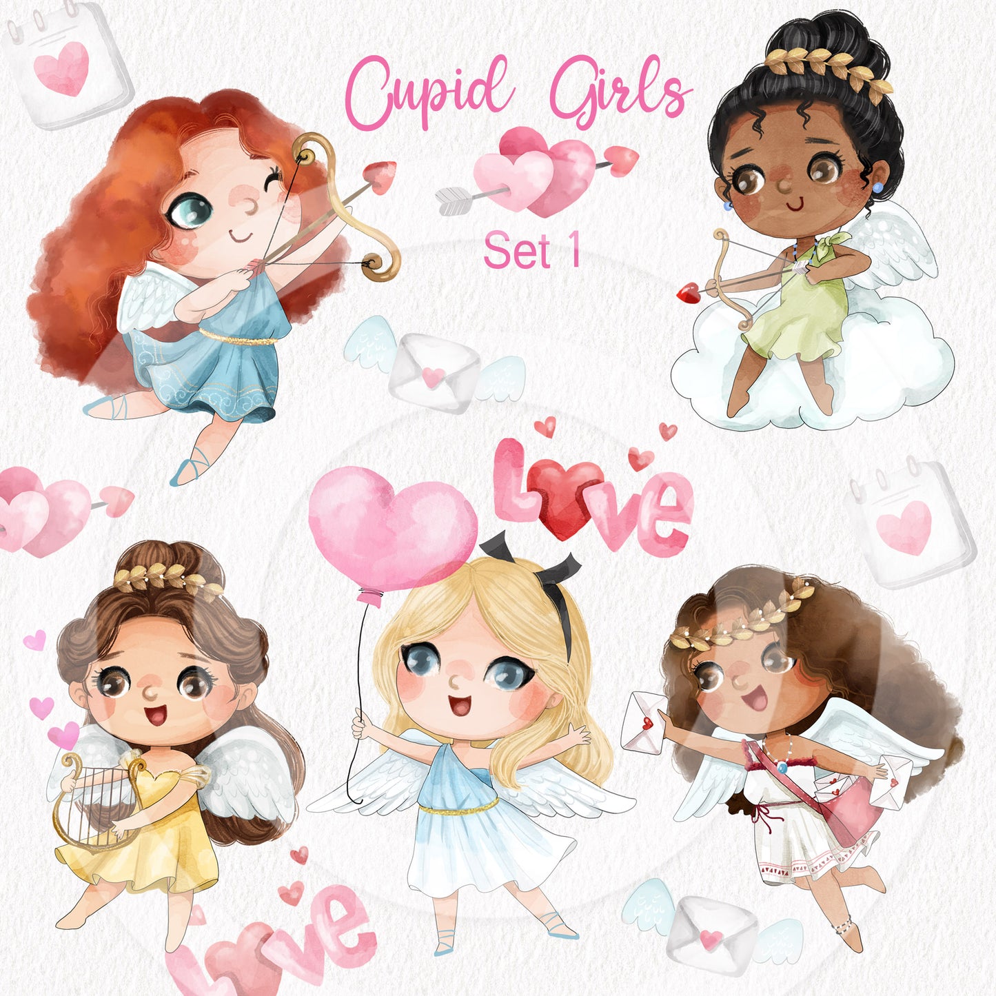 Cute Cupid girls clipart set 1, Cupid Clipart, valentines Clipart instant download PNG file - 300 dpi