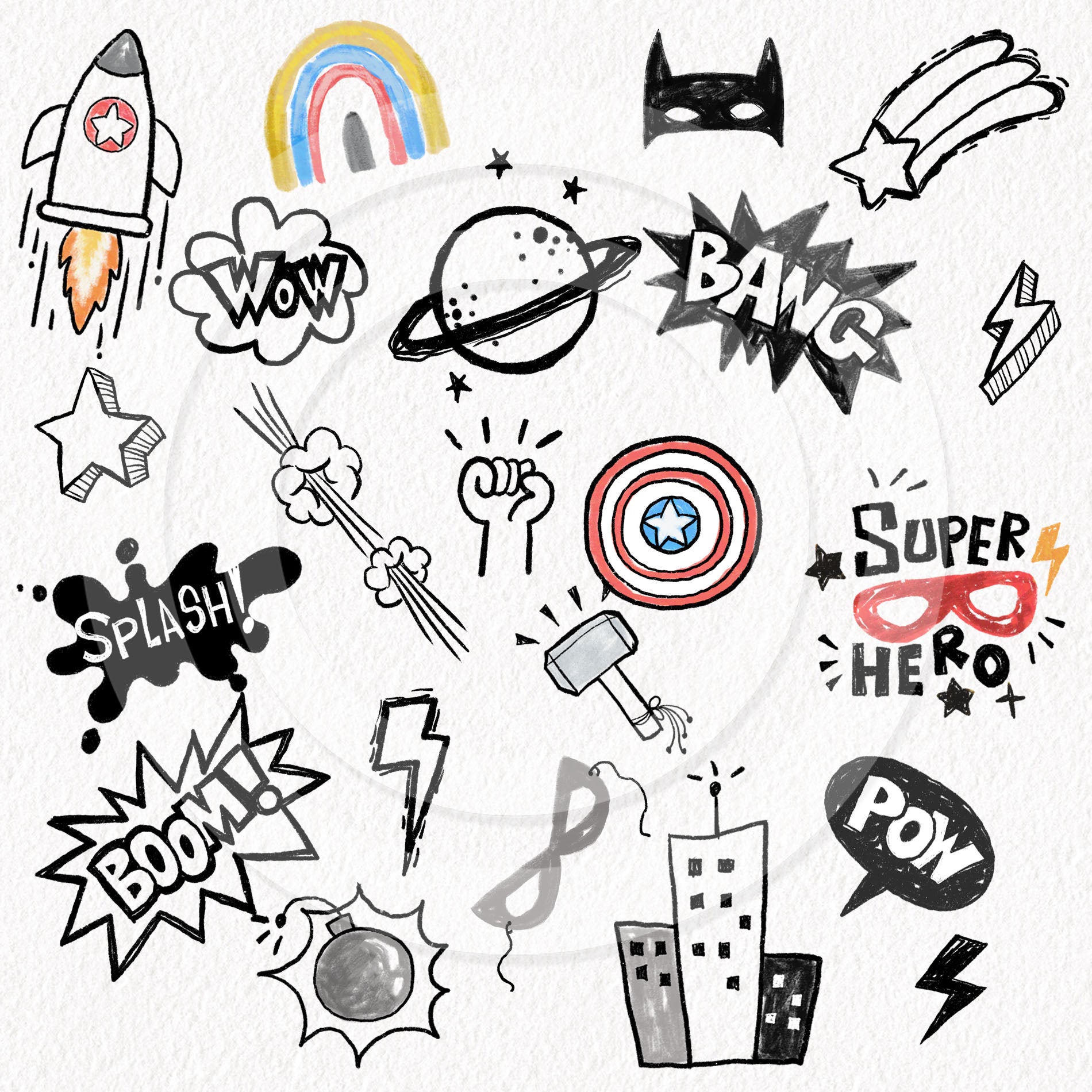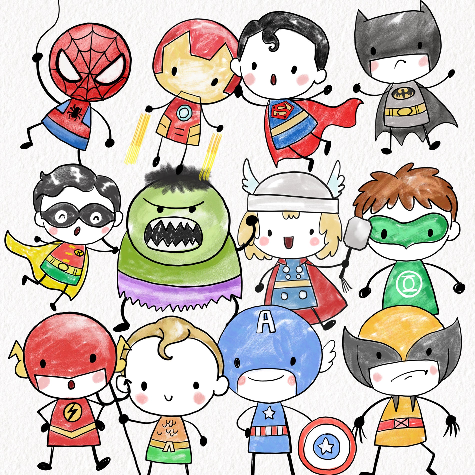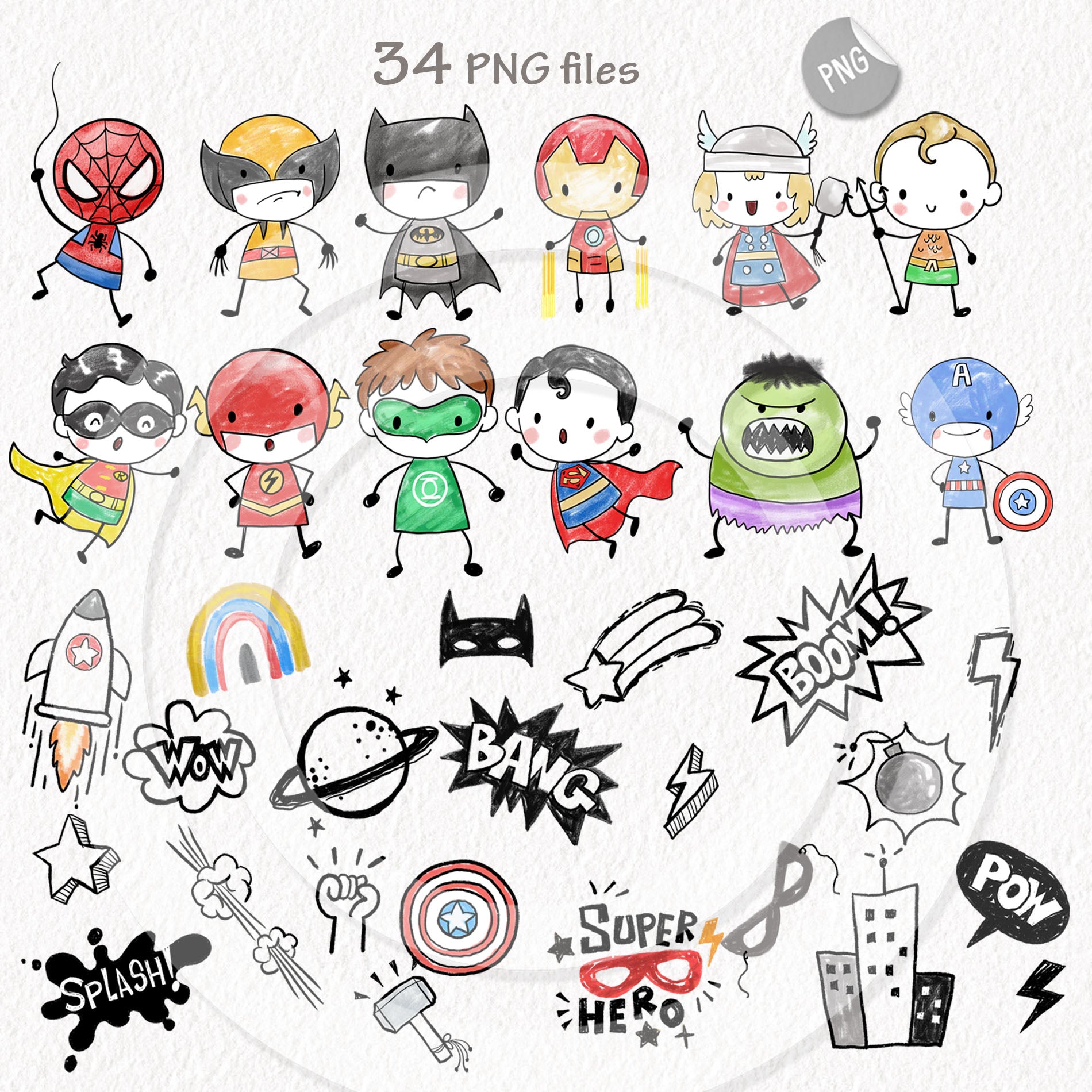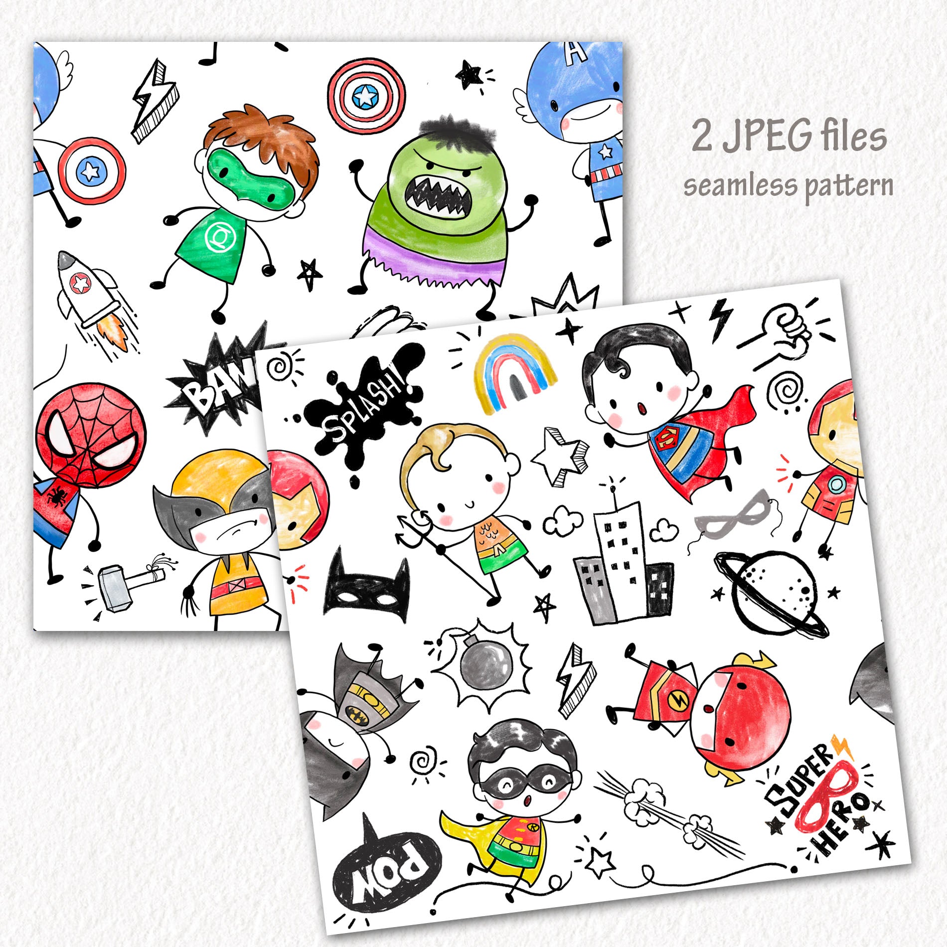 Cute Hero Hand Drawn ,doodle clipart, Seamless Pattern, instant download PNG file - 300 dpi
