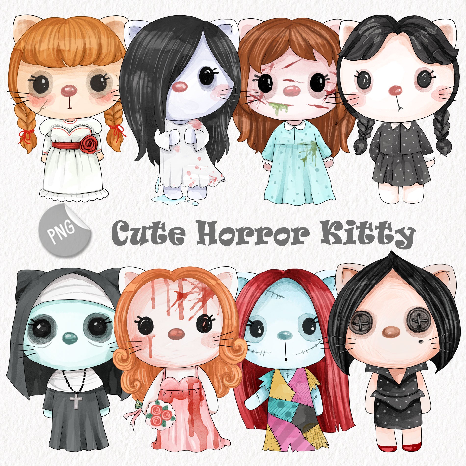 Cute horror Kitty, Halloween Clipart Set, Spooky Halloween Cat PNG clipart instant download PNG file - 300 dpi