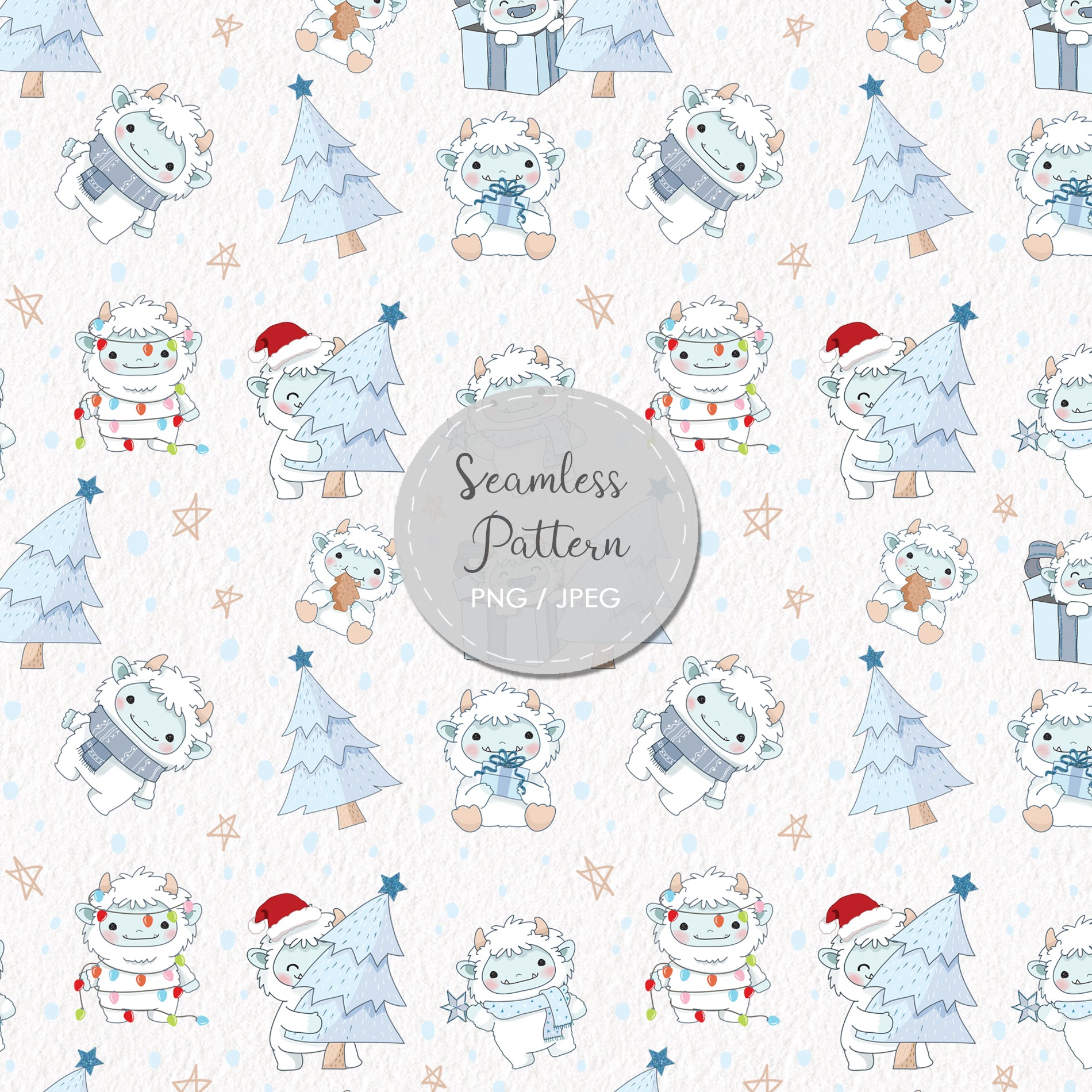 Cute Yeti Seamless Pattern, instant download PNG file - 300 dpi