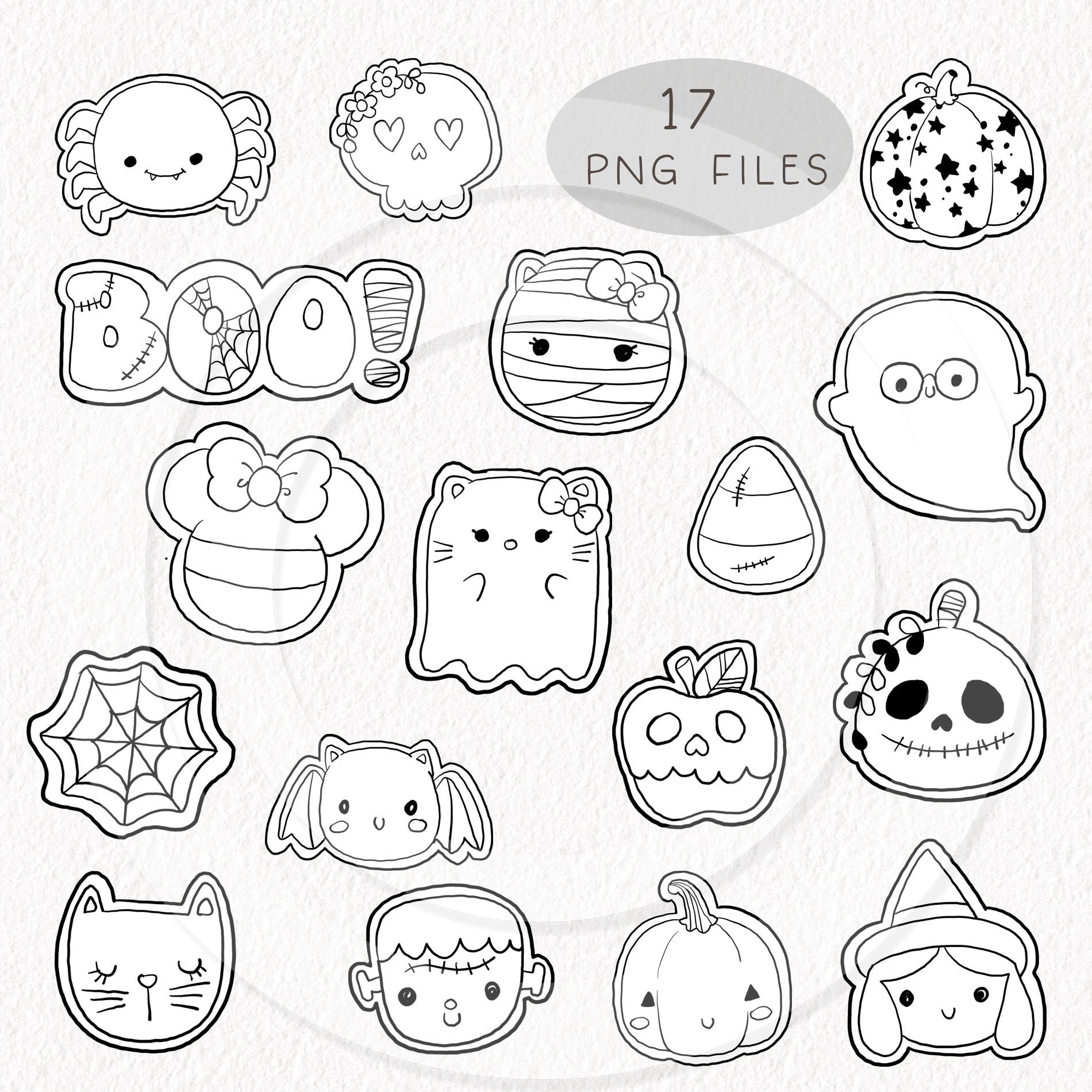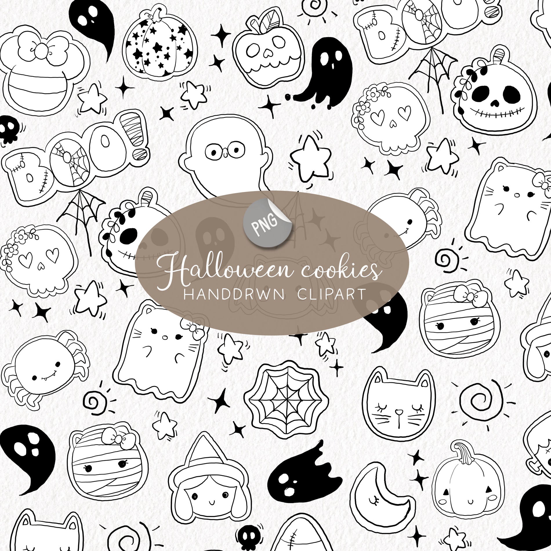 Halloween Cookies doodle ,blackline clipart, PNG file - 300 dpi