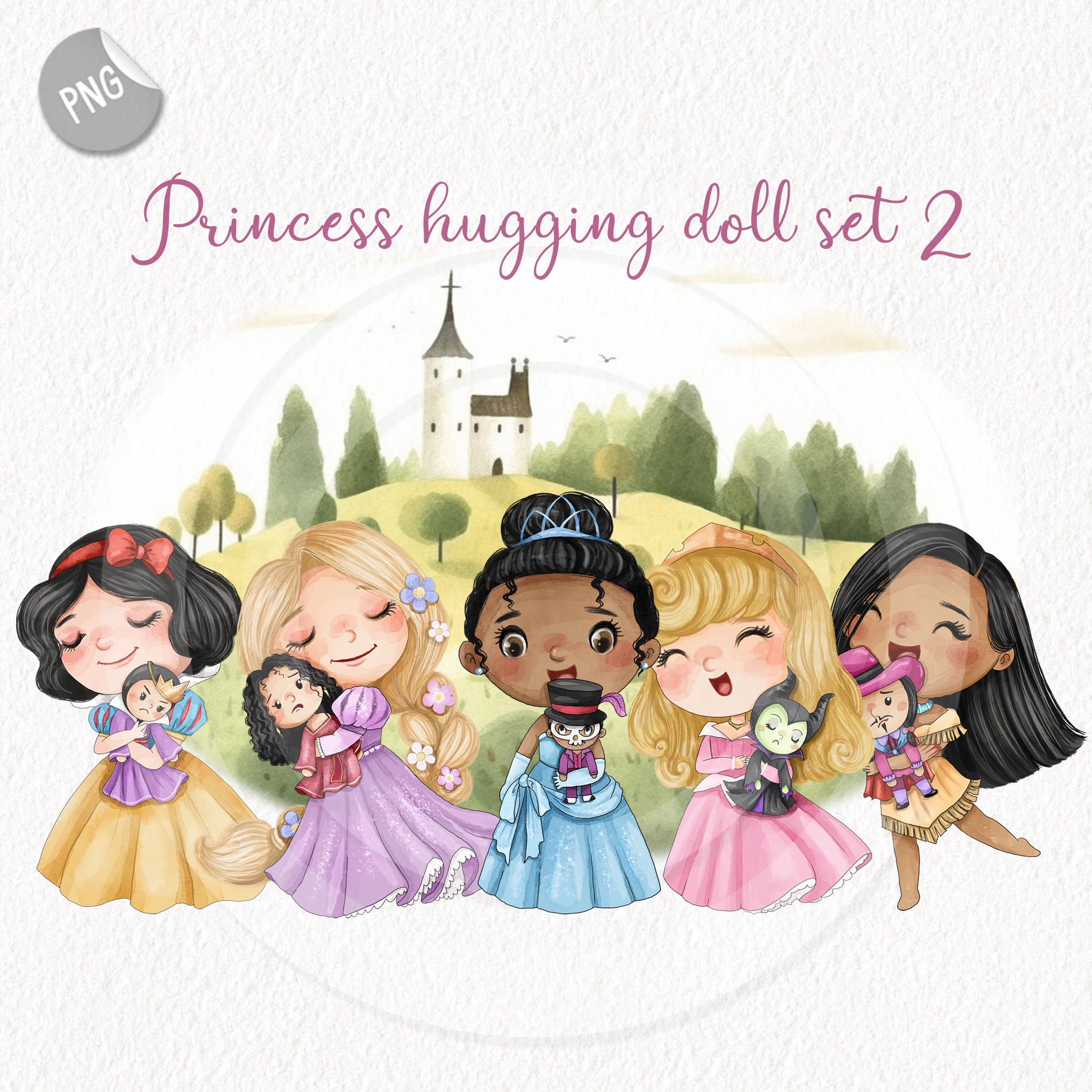 Princess hugging doll clipart set2 , instant download PNG file - 300 dpi