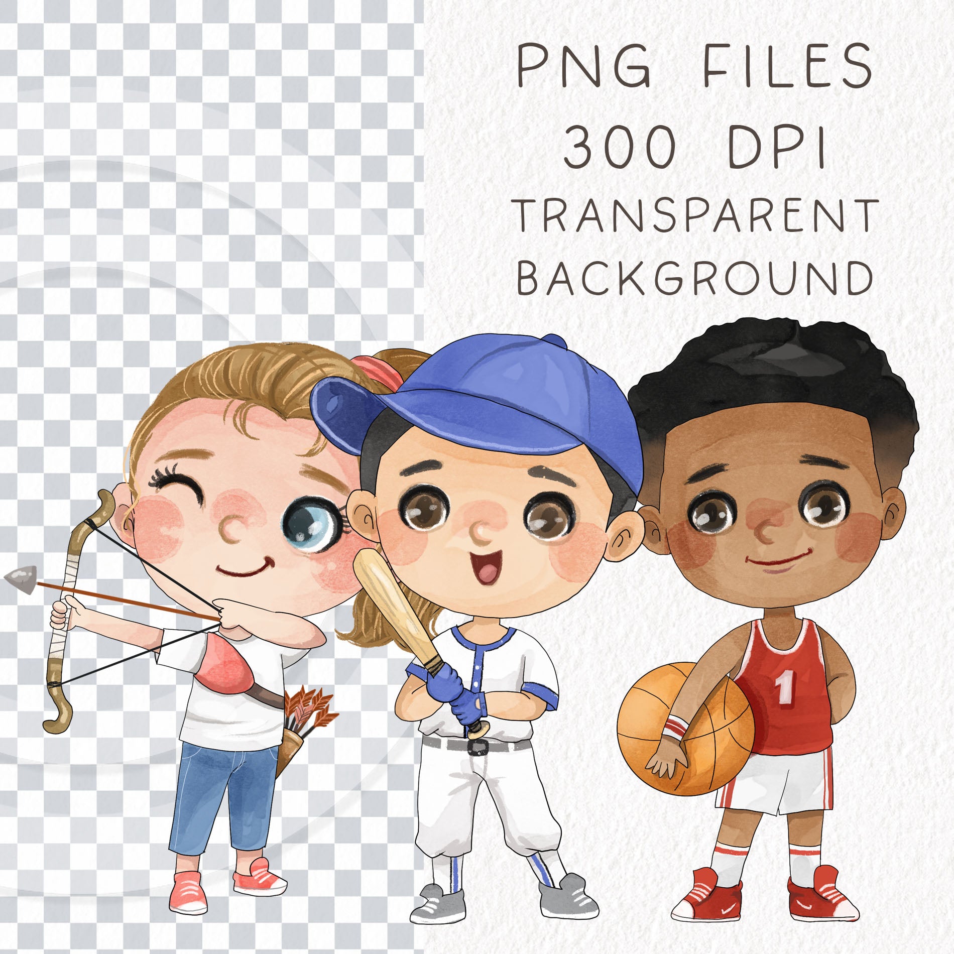 Sport Kids set 1, Kids Sport clipart, Hand drawn clipart, PNG files.