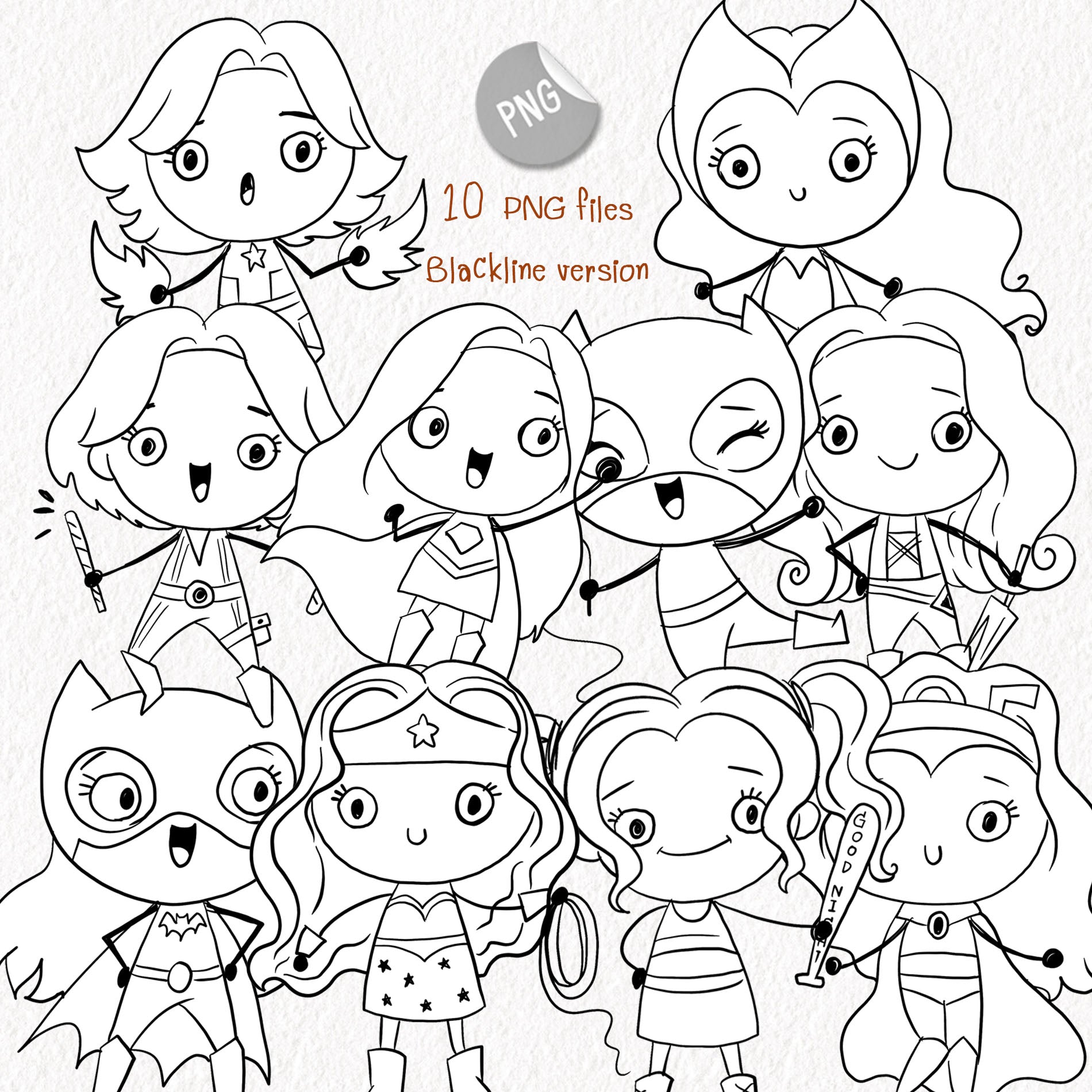 - 10 PNG files colors version and 10 PNG files blackline version with transparent backgrounds.