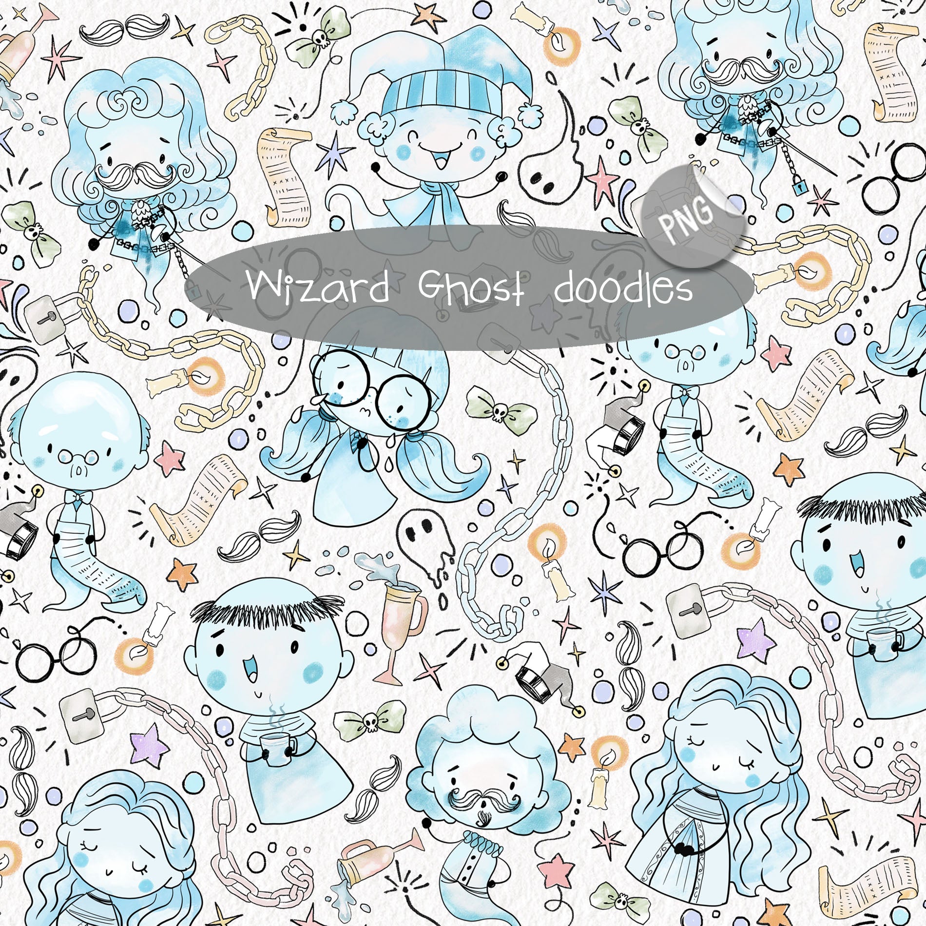 Wizard ghost Hand drawn doodle Clipart , PNG file - 300 dpi