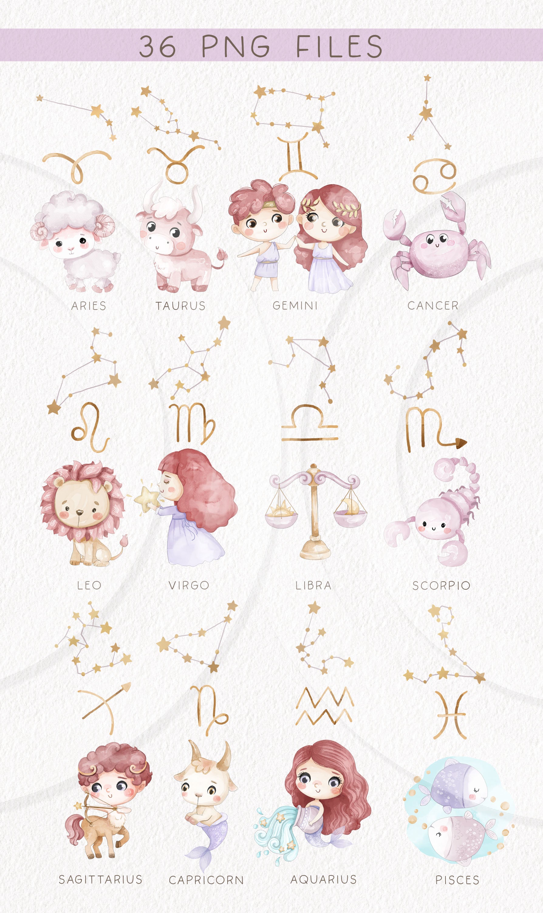 Zodiac Clipart bundles set, instant download PNG file - 300 dpi